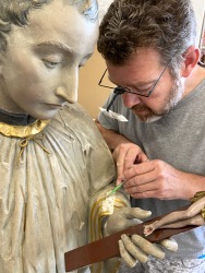 Nach den vom Denkmalamt geforderten Untersuchungen der Natursteinsubstanz – unter anderem mittels Hubsteiger und Drohnen – konnte das Schadensausmaß exakt ermittelt werden. Zurzeit arbeitet die Firma Michael Dursy an der digitalen Aufbereitung der Kartierungsergebnisse und führt erste Sicherungsmaßnahmen am Kirchturm durch.