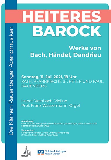 Die Tradition der Neujahrskonzerte in der Pfarrkirche St. Peter und Paul Rauenberg wird auch 2026 weitergeführt: Am Sonntag, 4. Januar 2026, um 17 Uhr wird es glanzvolle Musik zum Jahreswechsel geben. Berühmte Werke von Bach, Händel, Charpentier und anderen Barockkomponisten werden erklingen, aber auch beliebte Werke moderner Komponisten. Die Trompetenvirtuosen Stefan Glöckler und Benedikt Scherrer spielen auf der Barocktrompete, der Trompete und dem Flügelhorn, Ulrich Dürr schlägt die Pauken, und Professor Franz Wassermann spielt die Große Orgel der Rauenberger Kirche.